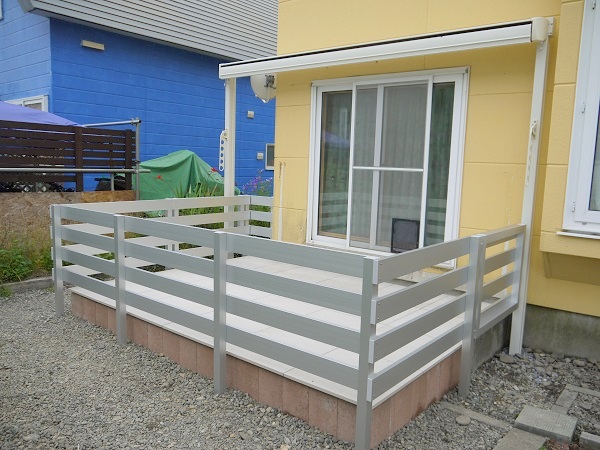 全体が明るく爽やかなイメージになりましたね。夏の強い日差しを避けて、ワンちゃんとも過ごせる快適なテラスが出来ました♪